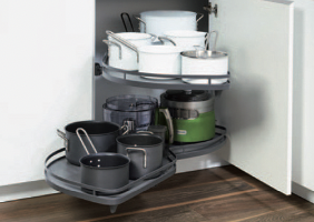 Alle interieuren zijn in anthracite uitgevoerd. Het gaat daarbij om: kunststof bestekindelingen, afvalemmers, apothekerskasten, tandemkasten en draaiplateaus in hoekkasten.